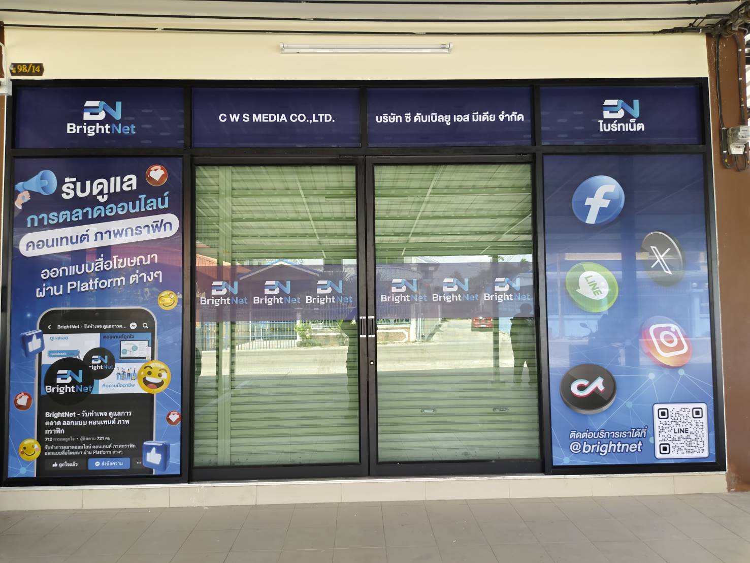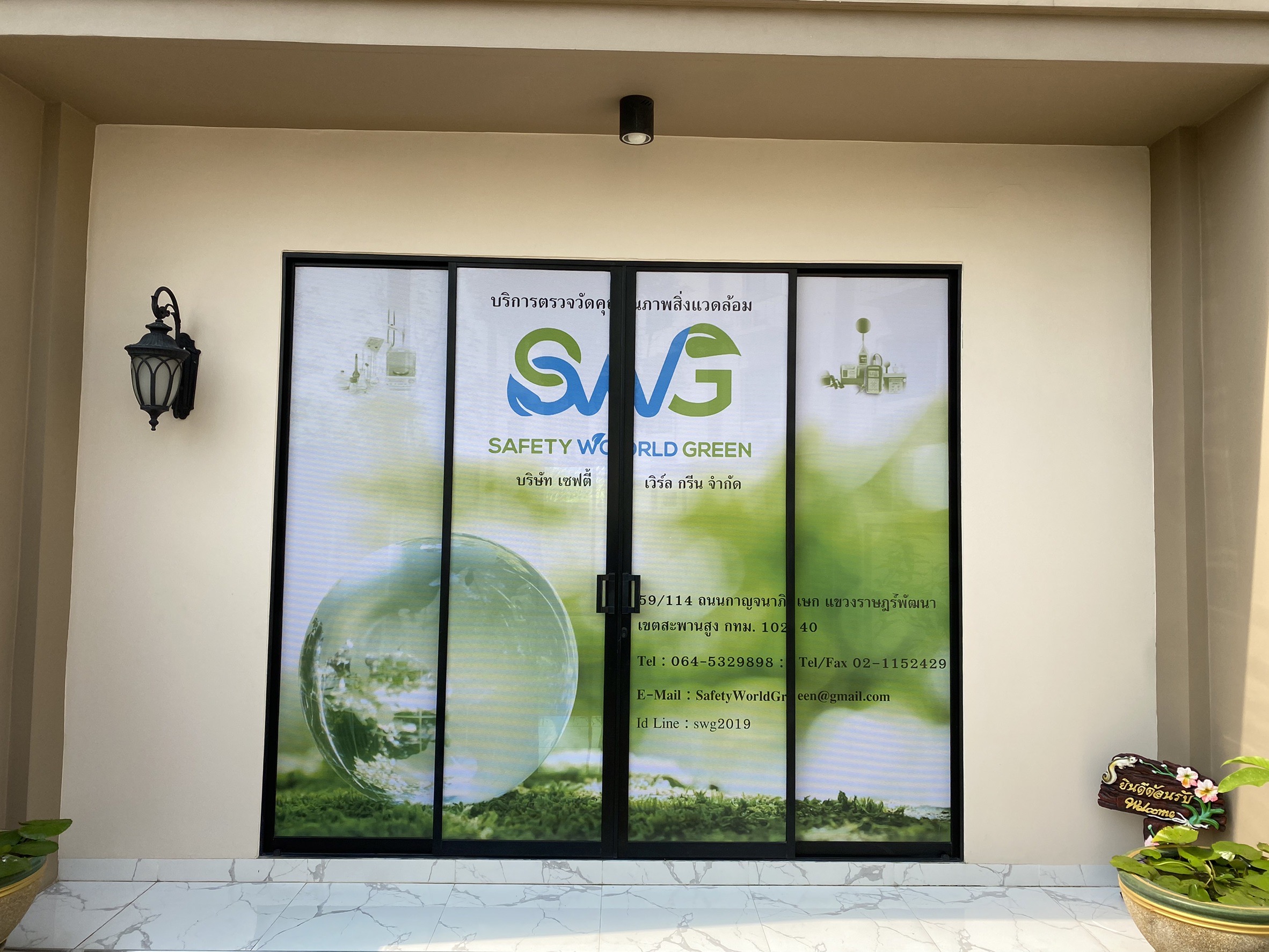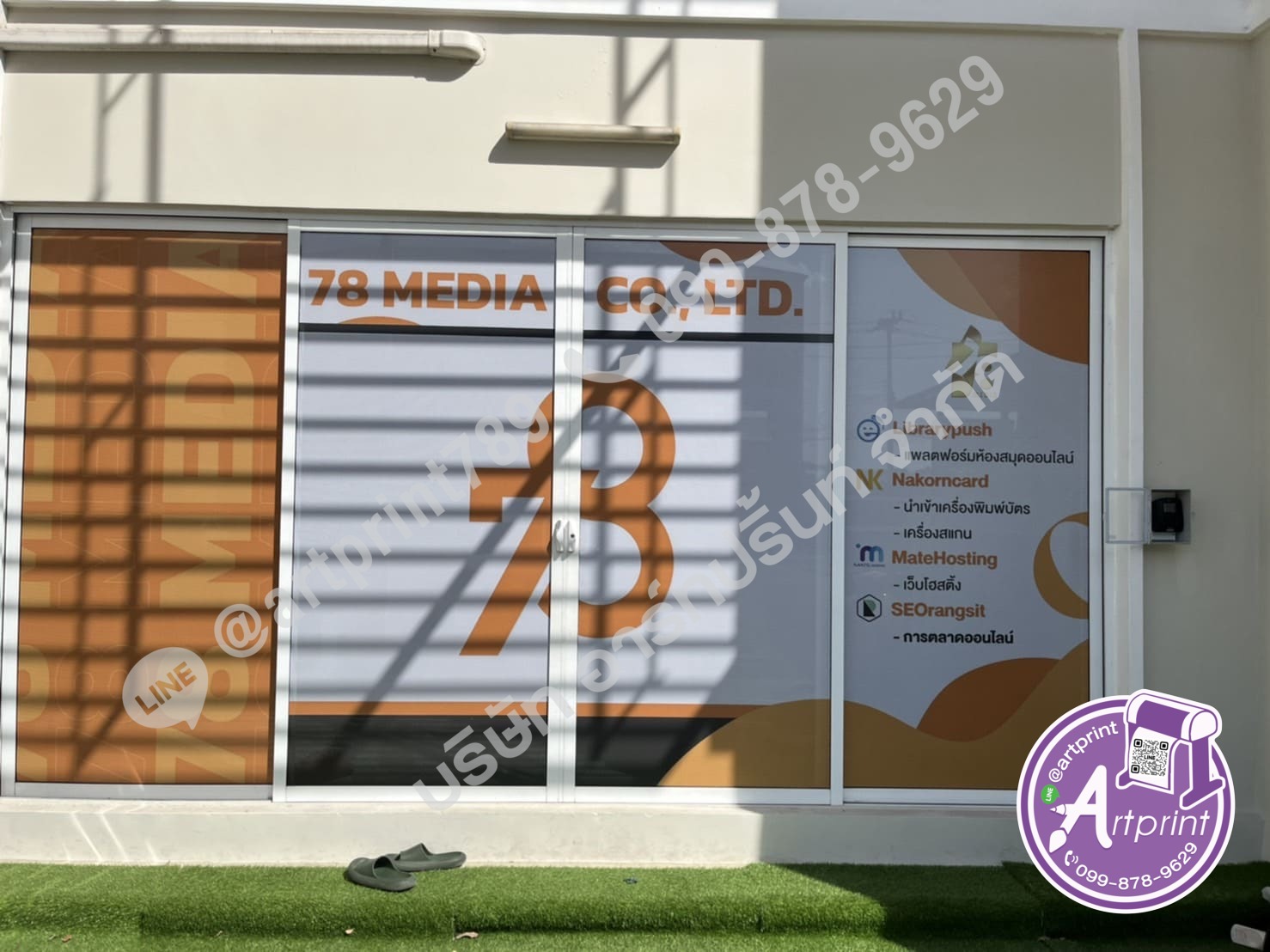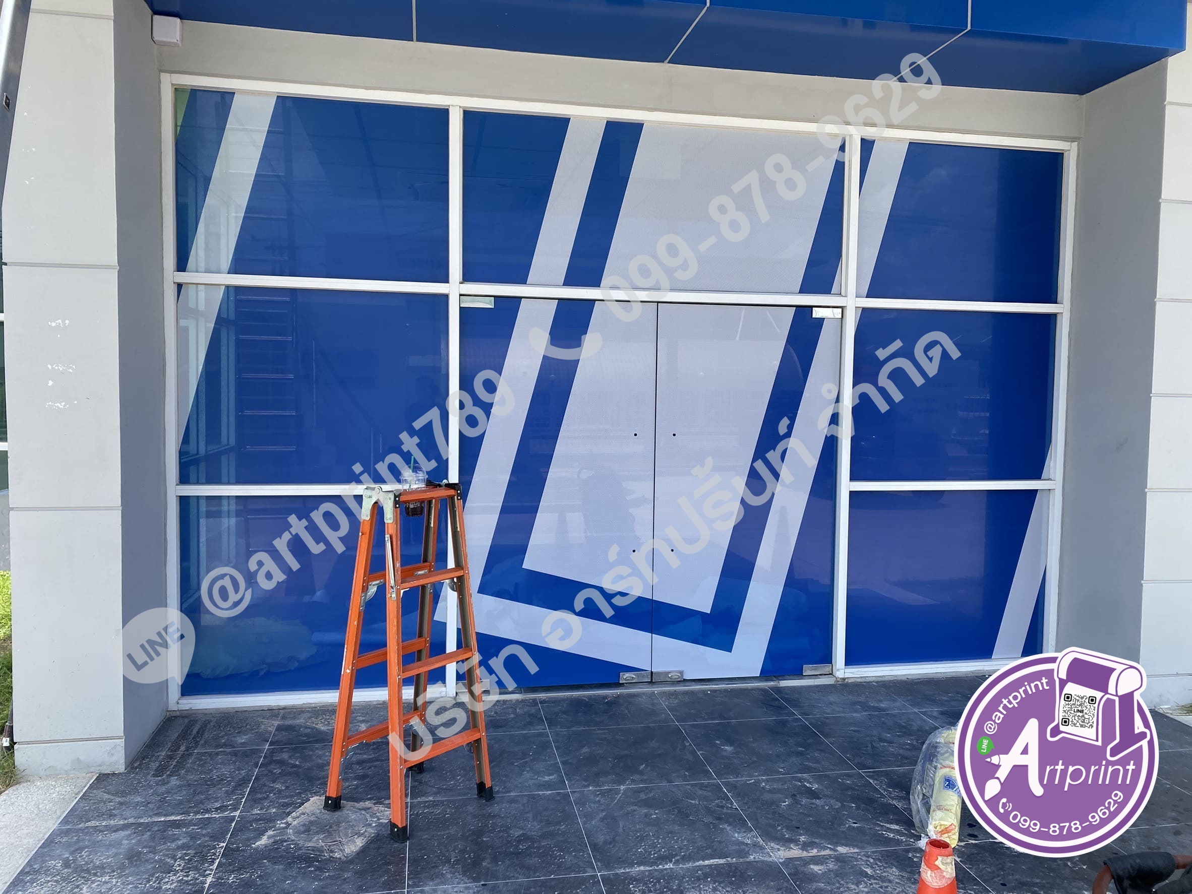 ติดฟิล์มแสดงโลโก้และข้อความเชิงธุรกิจ เพื่อสร้างความเป็นทางการและความเชื่อมั่นให้ผู้มาติดต่อ