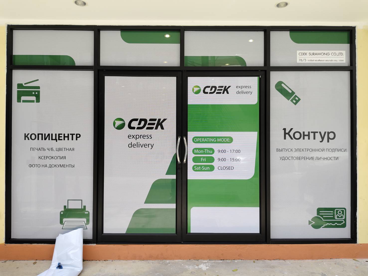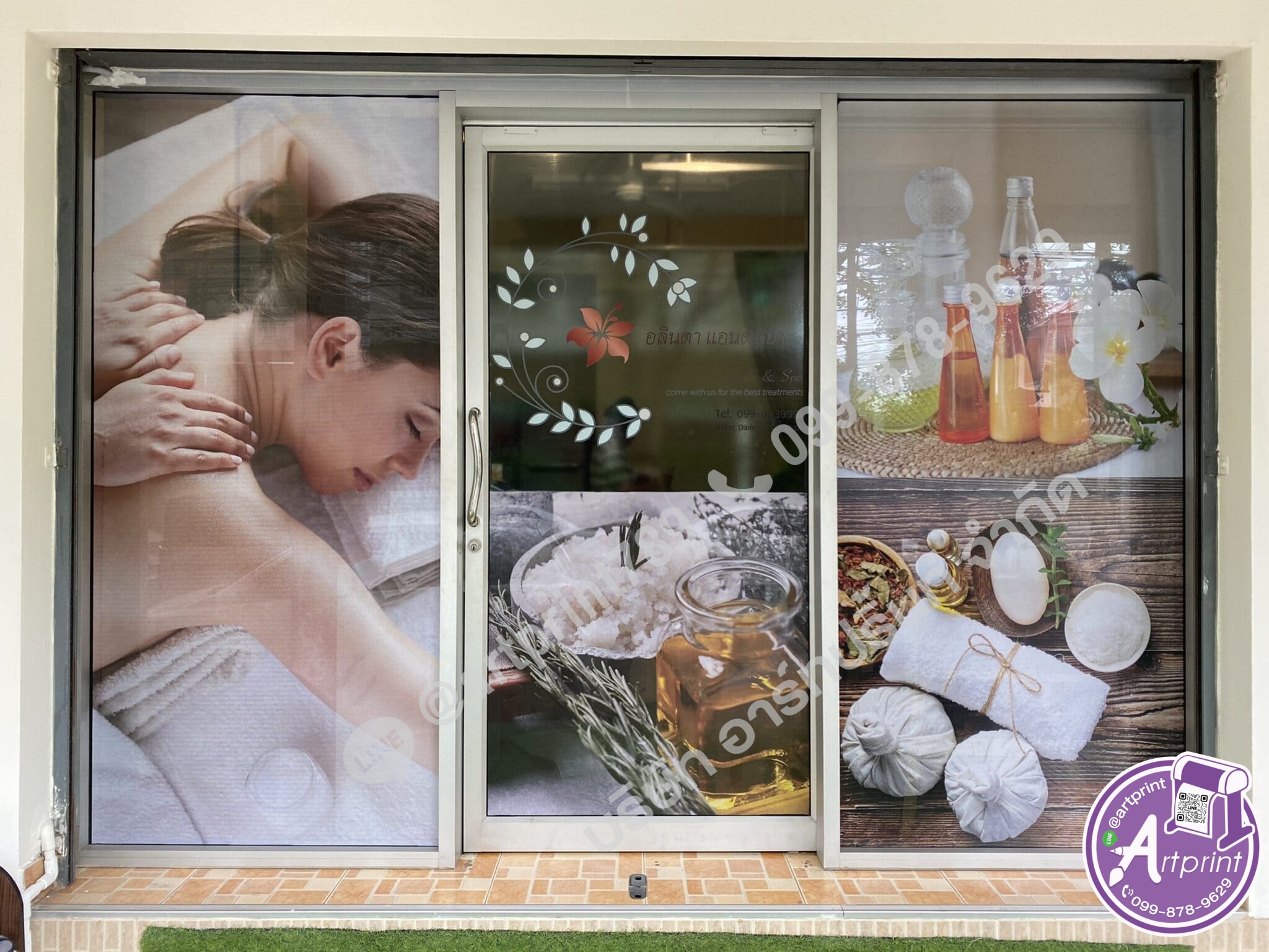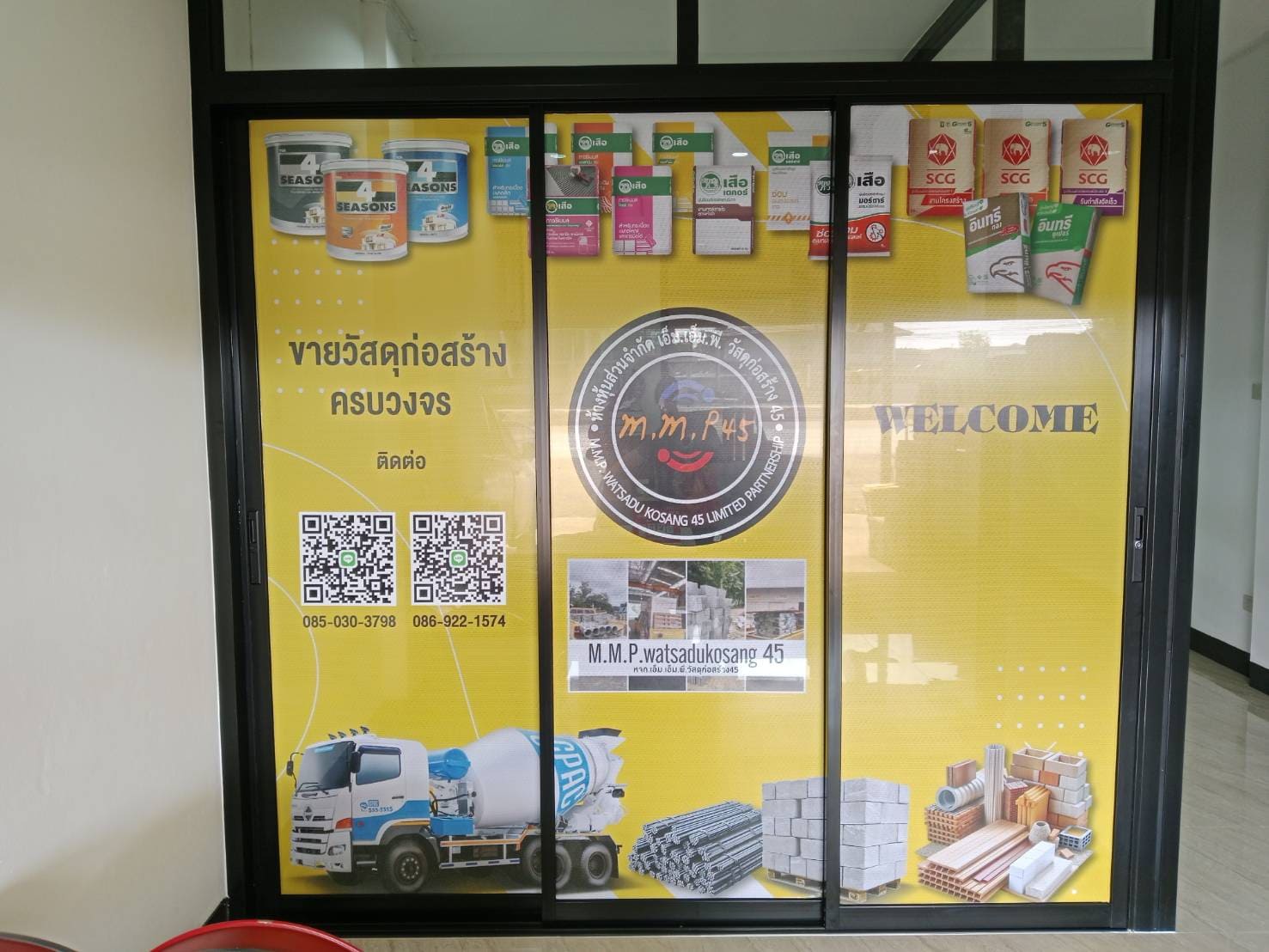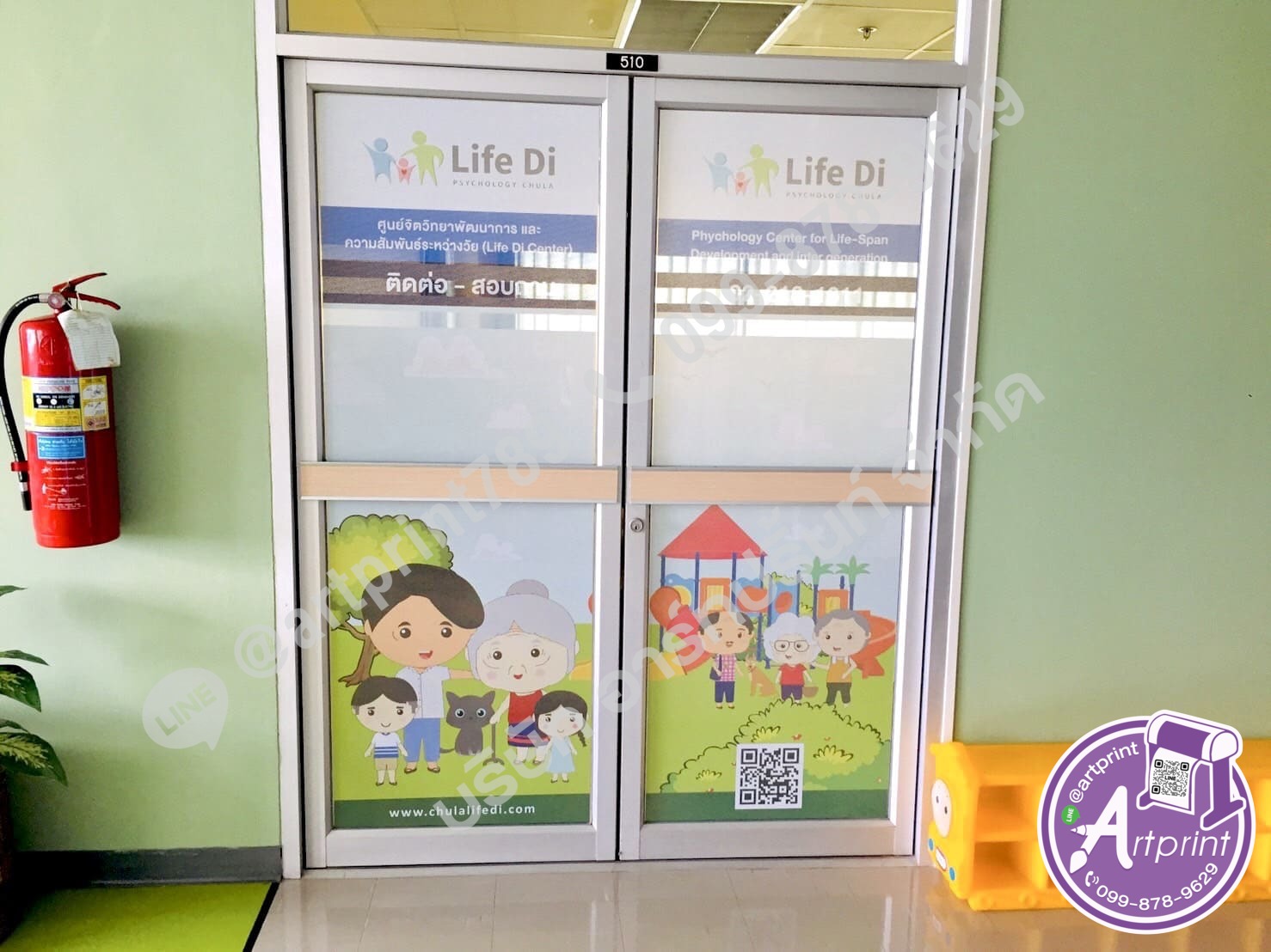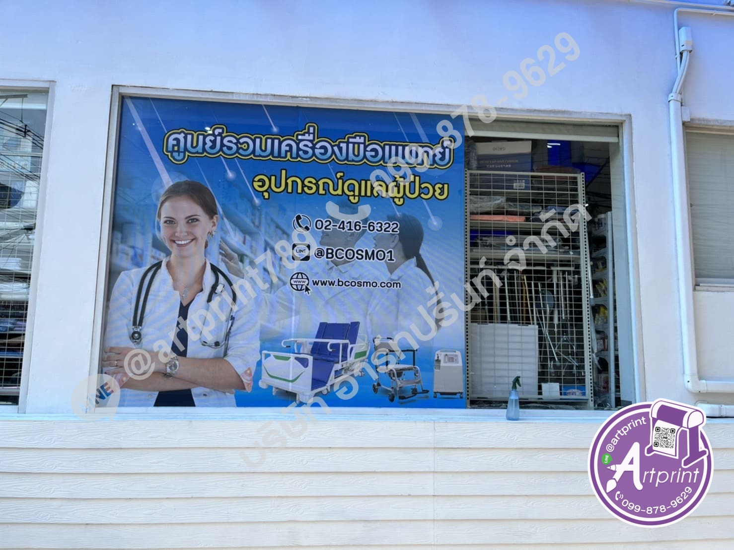 ติดฟิล์มแสดงโลโก้และข้อความเชิงธุรกิจ เพื่อสร้างความเป็นทางการและความเชื่อมั่นให้ผู้มาติดต่อ