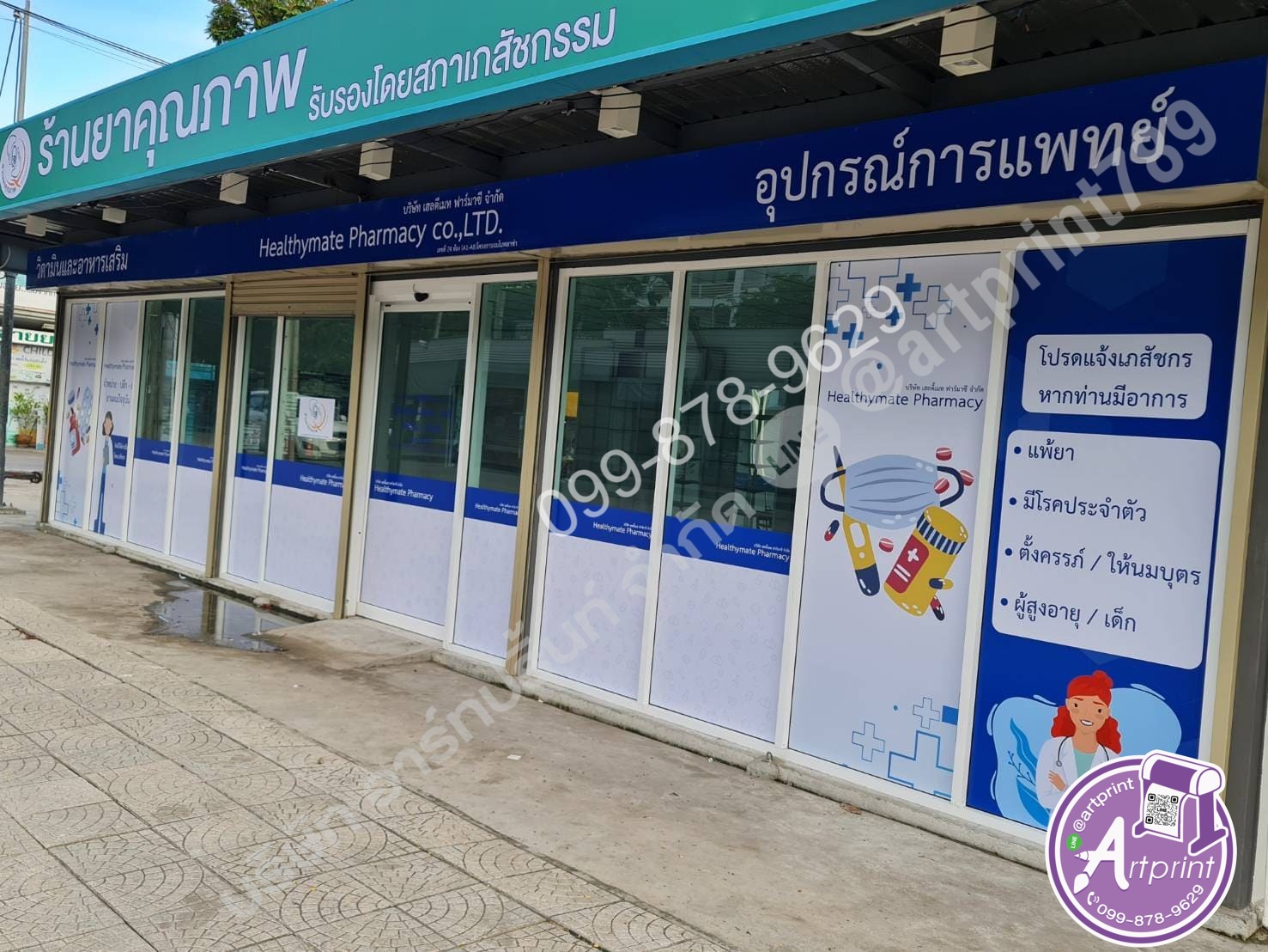 ป้ายซีทรูตกแต่งร้านขายยา หรือ สติ๊กเกอร์ซีทรูโฆษณาติดกระจก ก็เป็นอีกกรณีที่เห็นได้บ่อย เนื่องจากร้านขายยามักต้องการสื่อถึงความสะอาด เป็นระเบียบ และน่าเชื่อถือ การใช้สติกเกอร์ที่แทรกสัญลักษณ์ทางการแพทย์หรือคำแนะนำเบื้องต้นในการใช้ยา จะช่วยให้ลูกค้าเข้าใจบริการหรือผลิตภัณฑ์ได้ทันทีที่เดินเข้ามา ซึ่งช่วยลดภาระของเภสัชกรในการอธิบายข้อมูลเบื้องต้นไปได้ระดับหนึ่ง